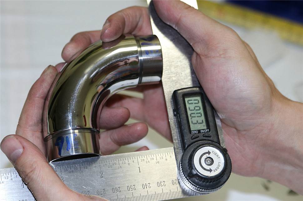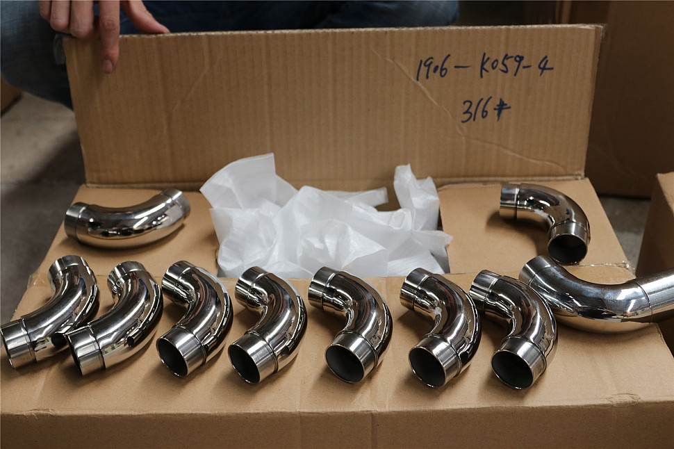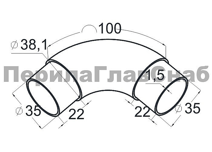 Отвод под поручень диаметром Ø38.1х110х1.5 мм, 90°. Деталь литая, полированная 600 Grit, с двумя установочными кольцами. Марка стали - AISI 316