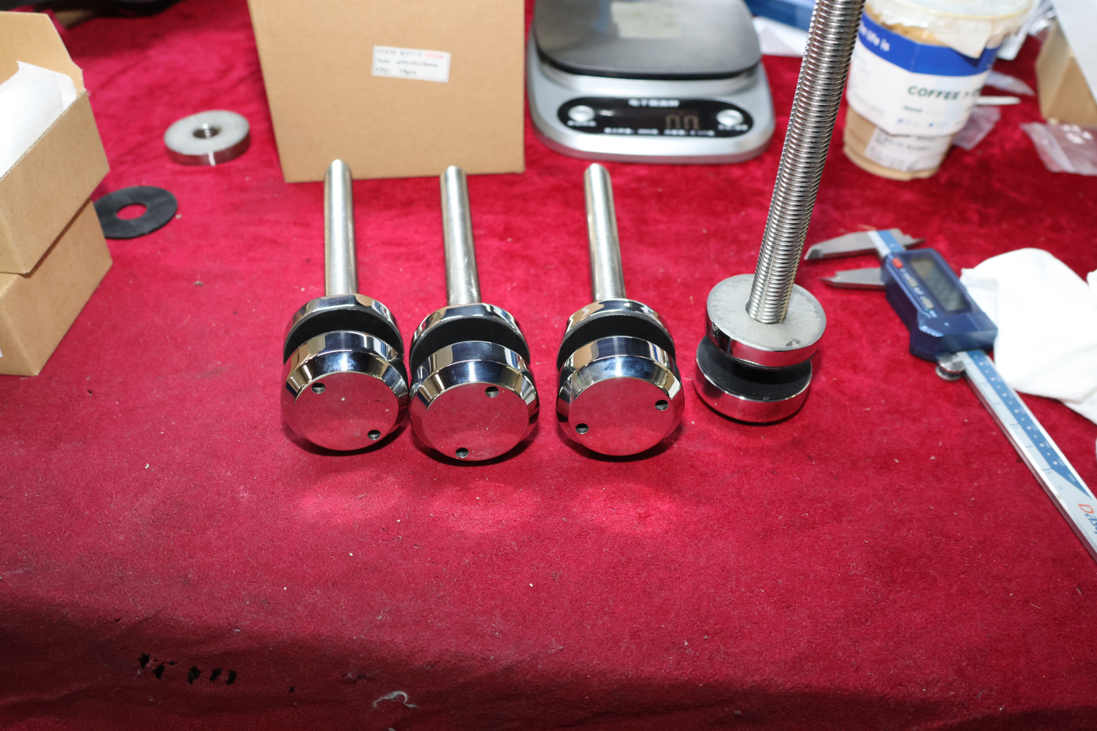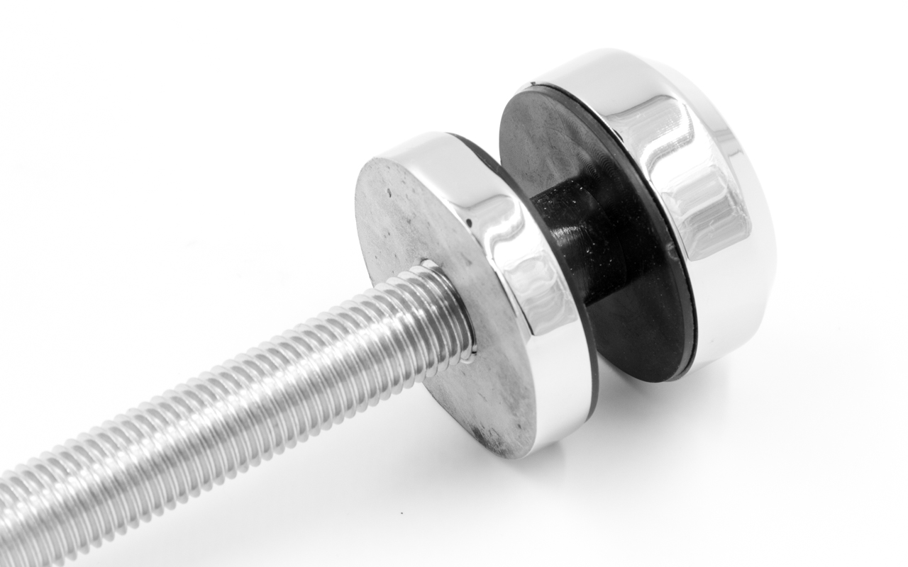 Точечный стеклодердатель для торцевого крепления несущего стекла в широчайшем диапазоне от 8 (4+4) мм до 40 (20+20) мм. Шпилька диаметром 16 мм и длиной 200 мм тестировалась на срез под нагрузку 2 тонны. Диаметр наружной (18 мм, хрюшка) и внутренней (10 мм) шайб по 50 мм.