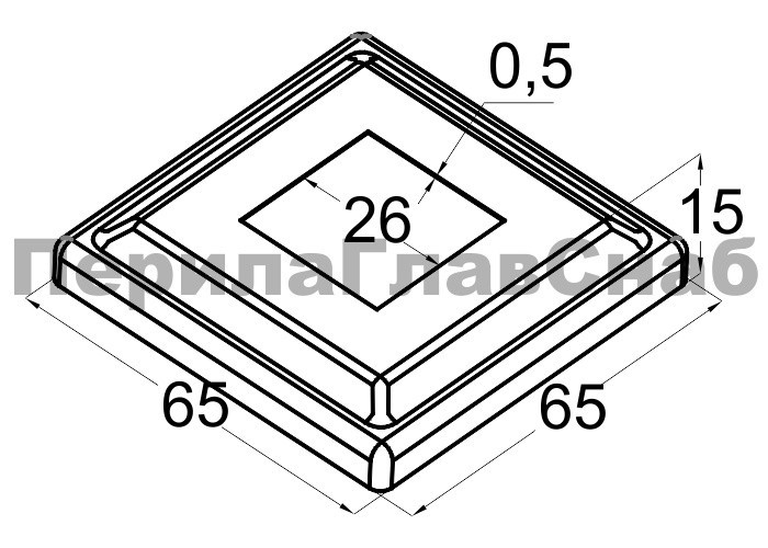 Низ стойки штампованный 66х66 мм для трубы 25х25 мм, S=0.4 мм
