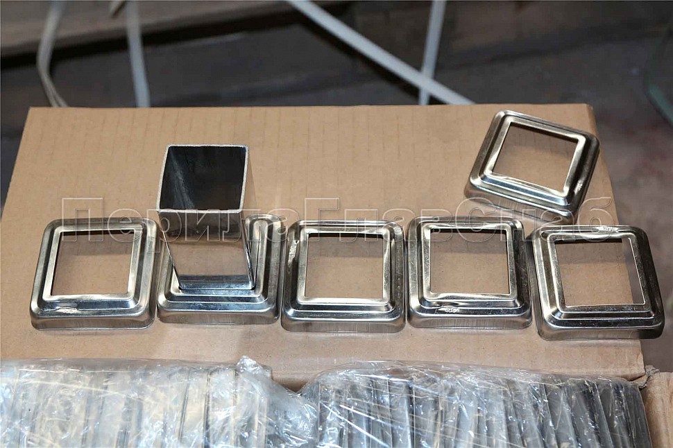 Низ стойки фигурный под трубу 40х40 мм, 64.5х64.5, высота 15 мм, полированный (AISI 304) k396