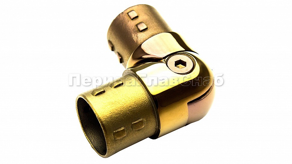 Поворот литой, внутренний, шарнирный, под трубу диаметр 38.1 мм. Деталь под золото, марка стали - AISI 304