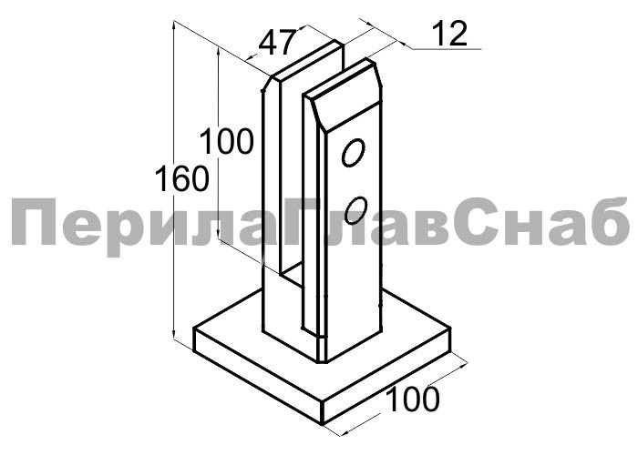 Стеклодержатель напольный 50х50х160 мм, литой, плоский, без сверления, нержавеющая сталь AISI 304, полированная k275-3 купить в Самаре