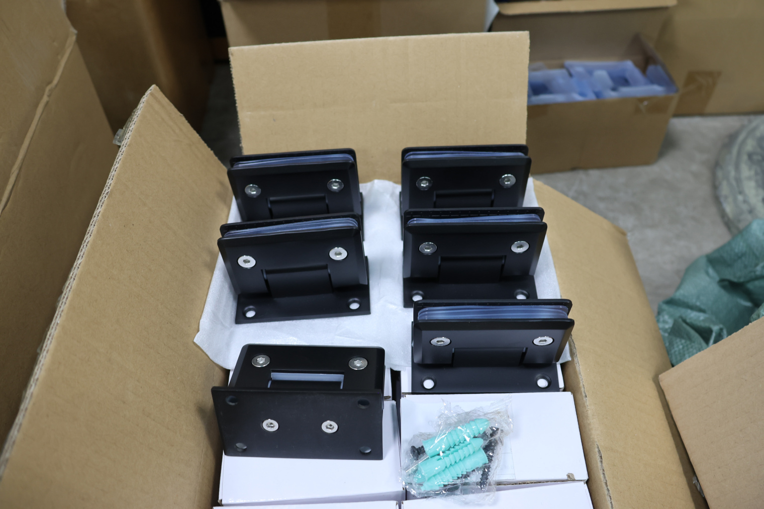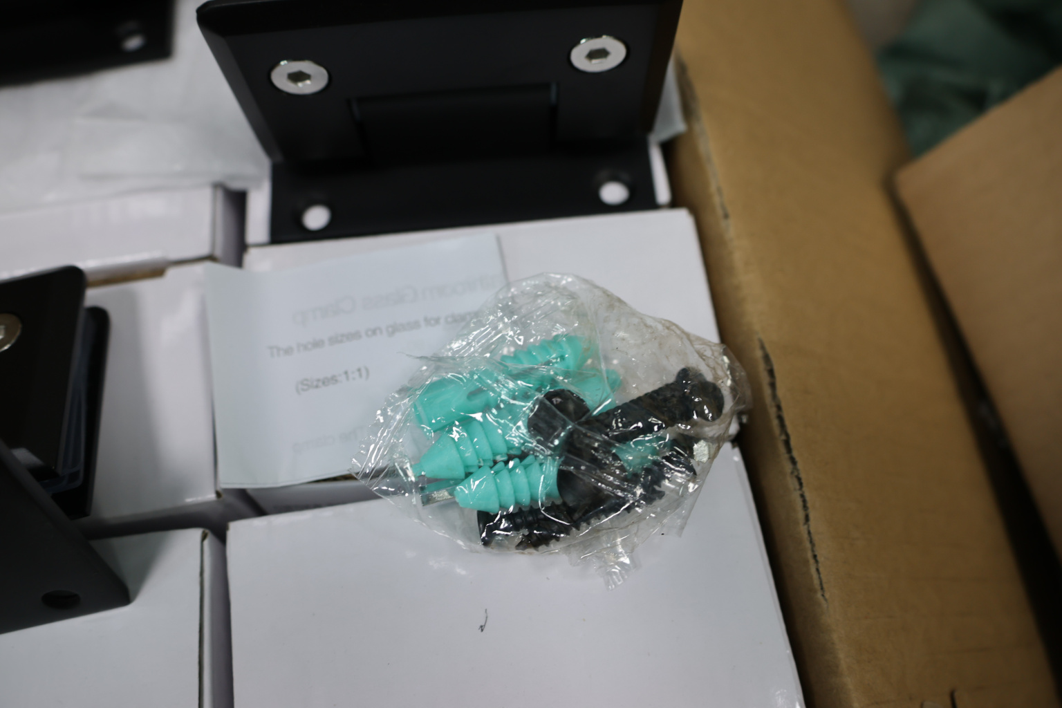 Фиксируем петлю стена- стекло используя саморезы, закручивая - не забываем уплотнитель. Также, если между стена-стекло остаётся щель, то используем уплотнитель.
