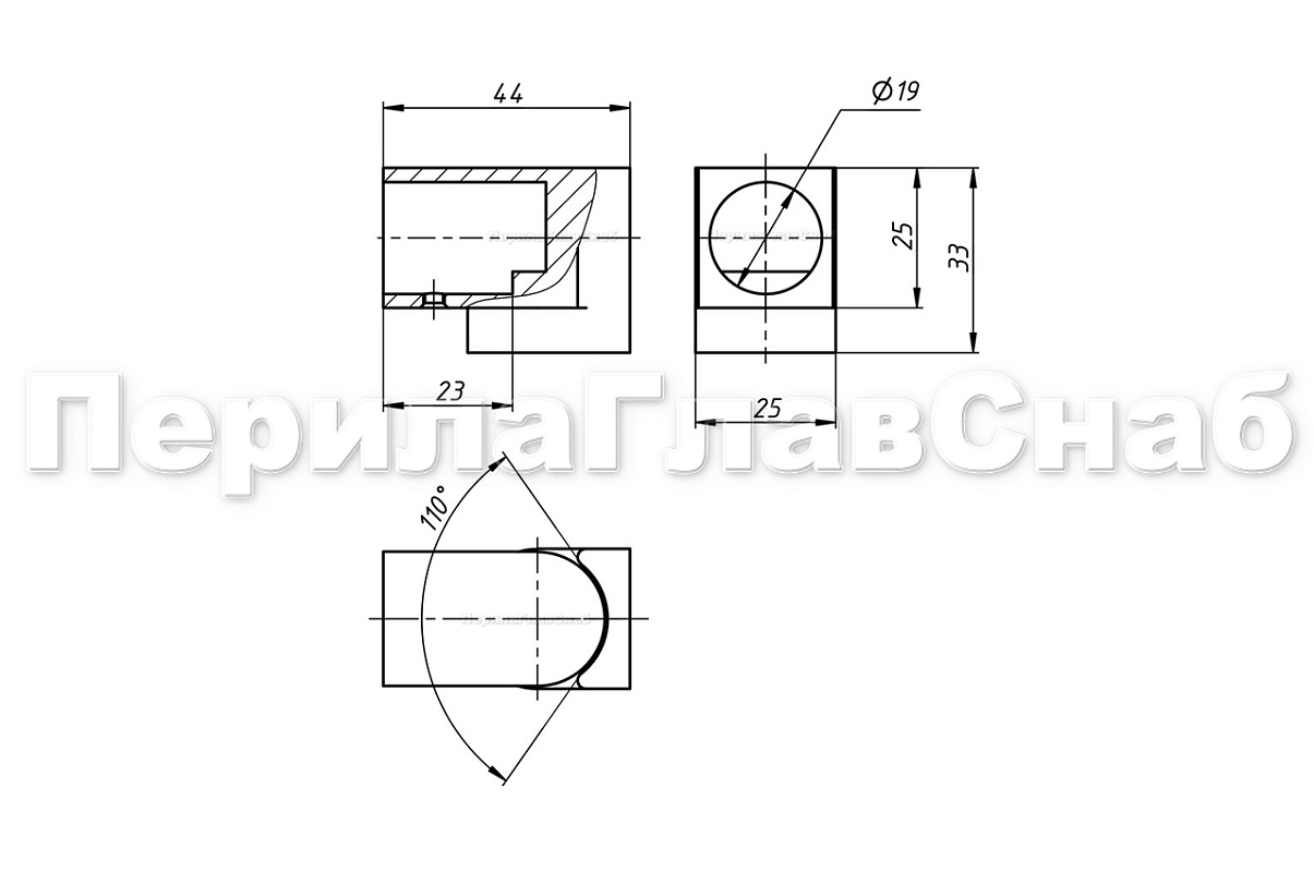Держатель стекла сквозной боковой, для трубы 19 мм, полированный, t912 PSS купить в Самаре