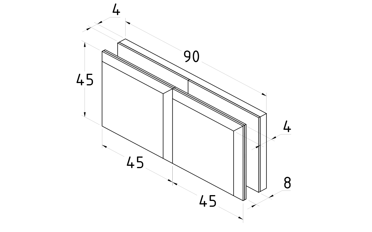 Коннектор для душевой кабины стекло-стекло 180°, 45х45, черный, вырез 71