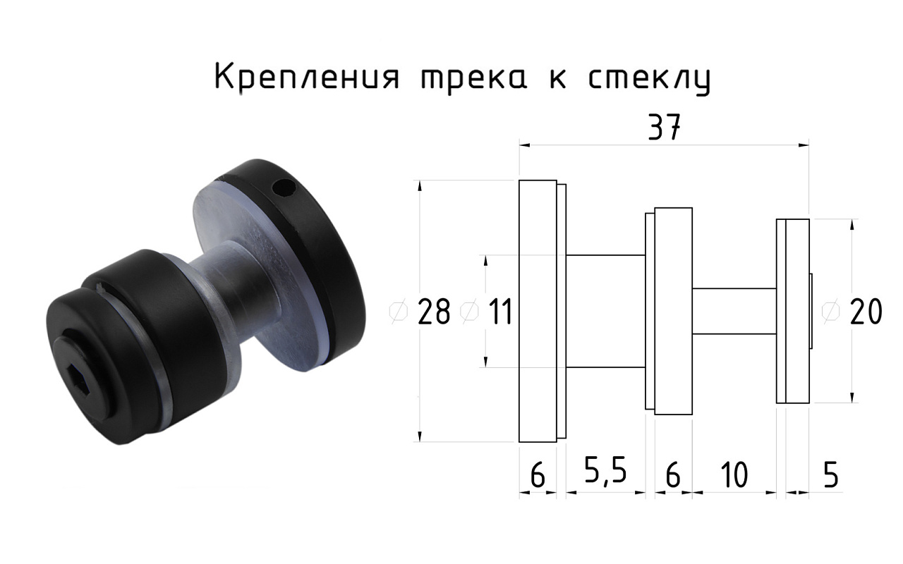 Крепление трека 30х10 к стеклу, AISI 304 черный t449 BL купить в Самаре