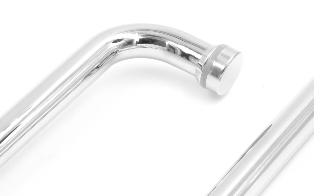 Ручки ПерилаГлавСнаб сделаны из высококачественной нержавеющей стали марки AISI 304 ( 08Х18H10 ) , что дает возможность  установки , как внутри так и снаружи помещений. Толщина стенки составляет  1,0 мм  ( обычно это значение не привышает 0.6-0.7 мм ),  что обеспечивает защиту от механических повреждений . Винт крепления имеет полную резьбу это позволяет установить ручку на любую дверь толщиной от 8 мм до 12 мм.  В комплекте используются прокладки-шайбы из эластичного и морозостойкого ПВХ.
