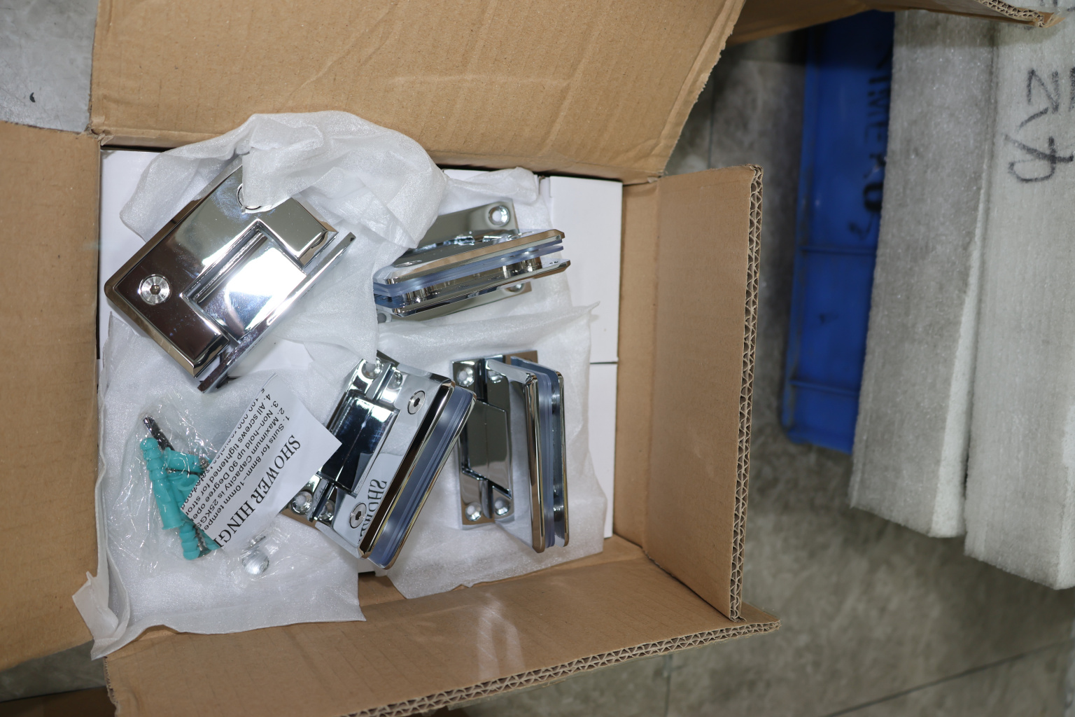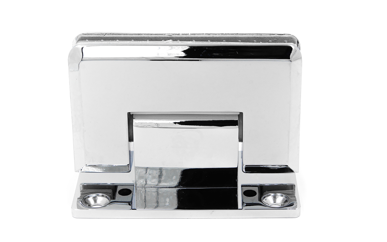 Петля стена-стекло для соединения стеклянной двери душевой кабины со стеной ванной комнаты. Двухстороннее крепление позволяет устойчиво закрепить петлю на стене и уверенно открывать и закрывать дверь в обе стороны. Максимальный угол разведения стыковочных элементов в плане составляет 90°. Масса двери может составлять 35 кг на две петли.