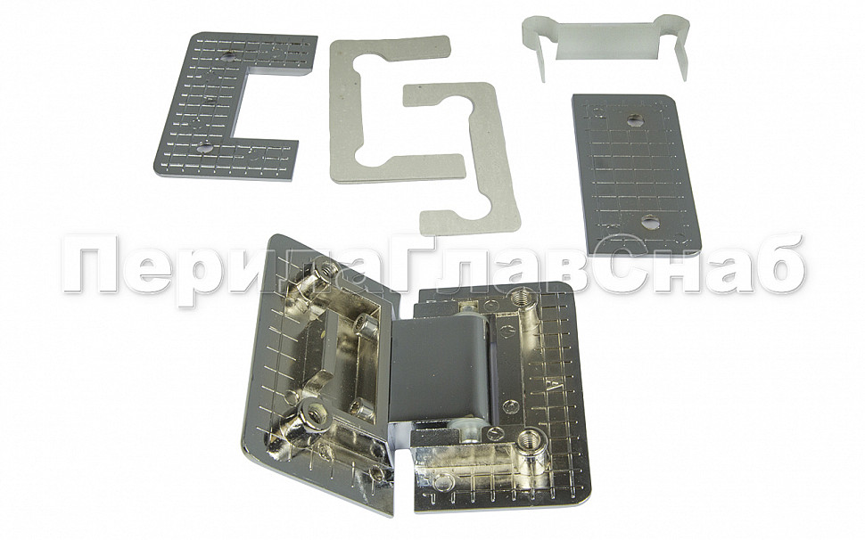 Петля стекло-стекло крепится с обеих сторон на стеклянные поверхности, плотно прижимаясь к ним своими металлическими зажимами.