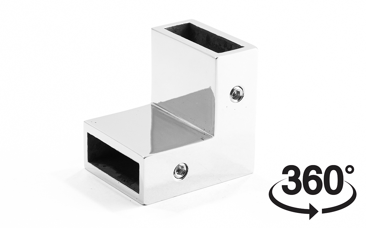 Соединитель из алюминия с полированной поверхностью из нержавеющей стали. Является идеальным решением в случае, когда необходимо зафиксировать две трубы под углом 90 градусов