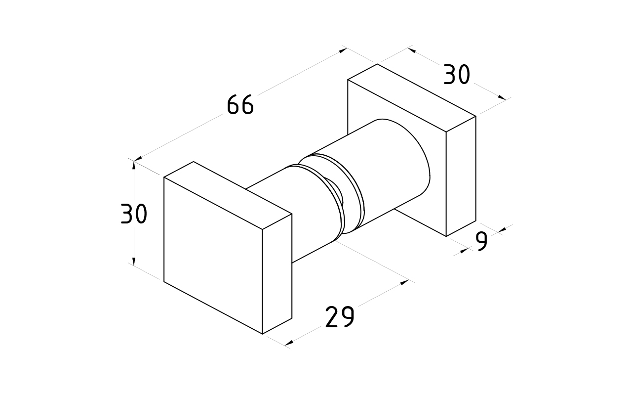 Ручка-кноб квадратная для стекла 6-12 мм, нержавеющая сталь AISI 304, полированная t669 PSS