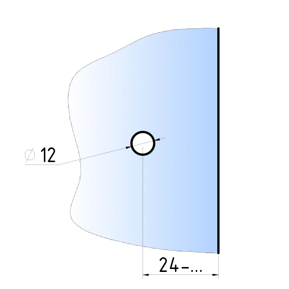 подготавливается отверстие в стекле с вырезом и с двух сторон закручивается ручка