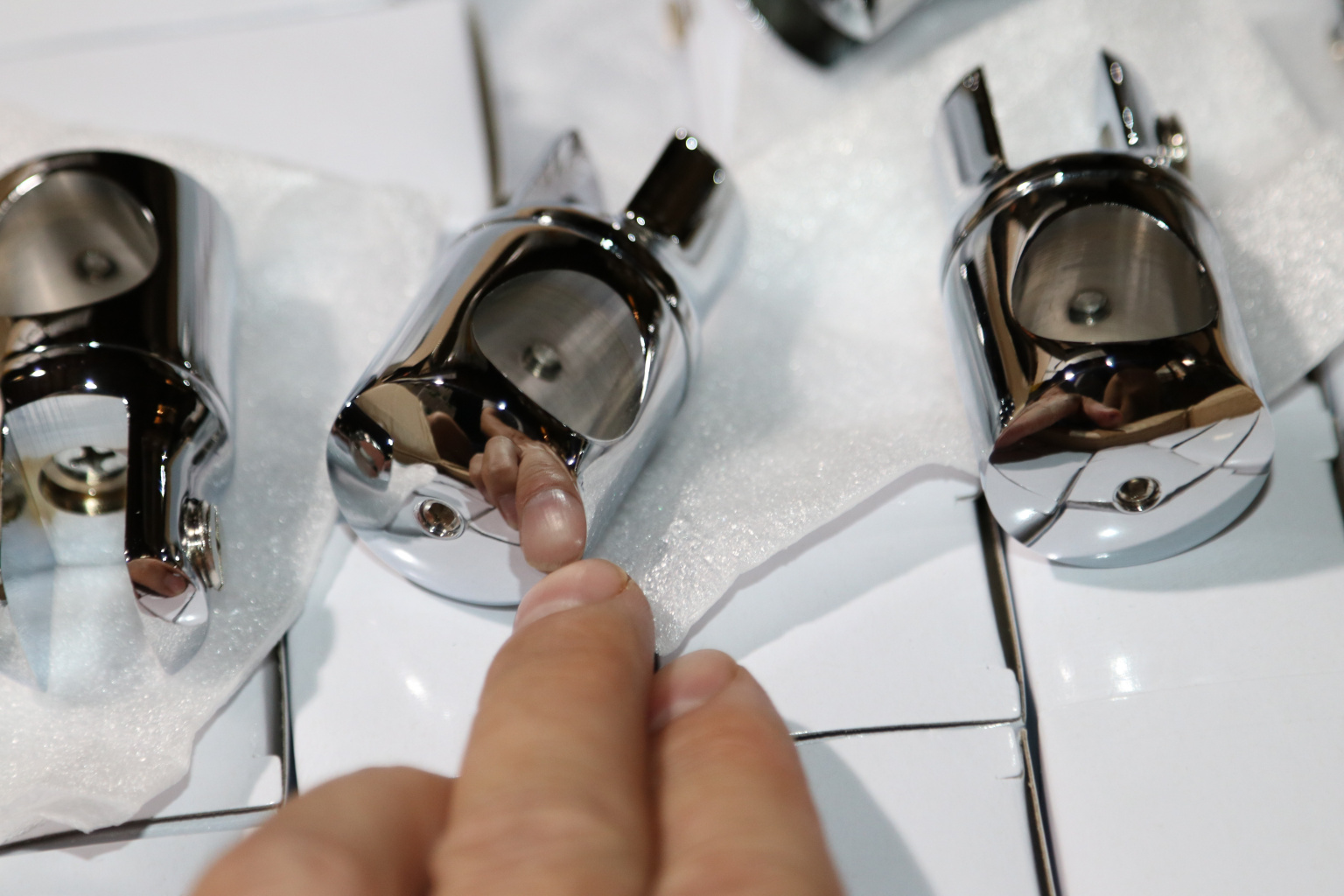 Трек вставляется в отверстие держателя. Далее держатель фиксируется на нужном месте трека с помощью винта с шестигранником, после чего в паз между лепестками ставится стекло и также зажимается винтом, прокладки не допускают прямого контакта стекла с винтами , что делает соединение более надежным