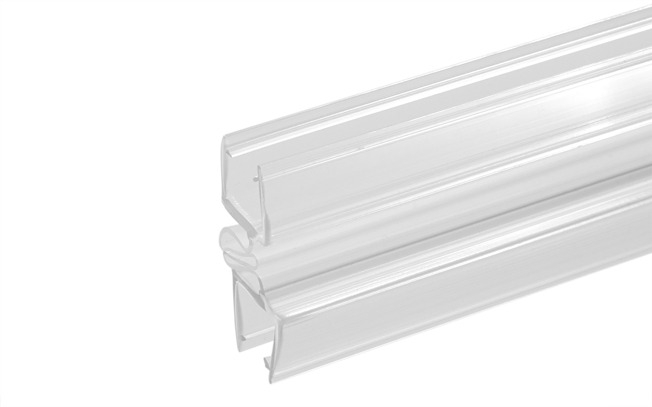 Монтируется по всему периметру стеклянного листа. Позволяет закрыть зазор между стёклами и добавить герметичности душевой кабине.