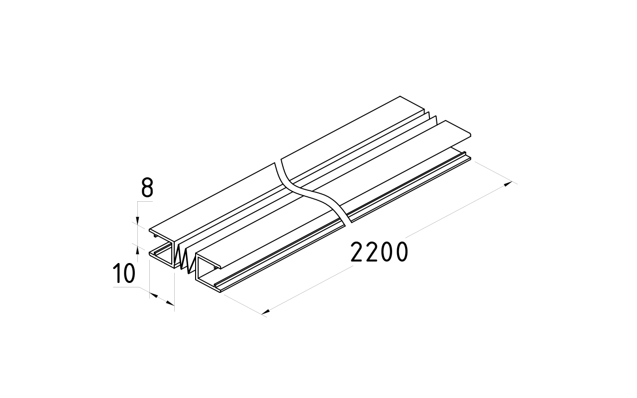 Уплотнитель для стекла 8мм, 90°, стекло-стекло 2,2 м.длина уса 25 мм t215y-8