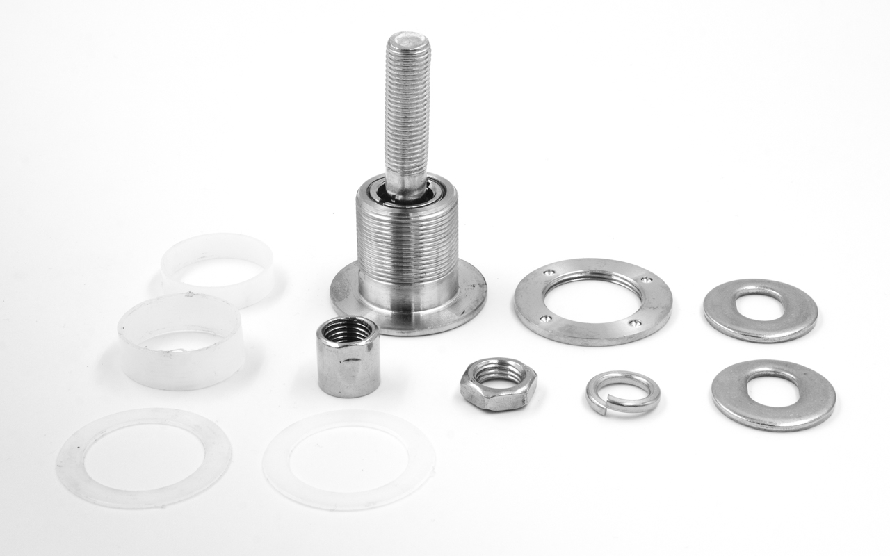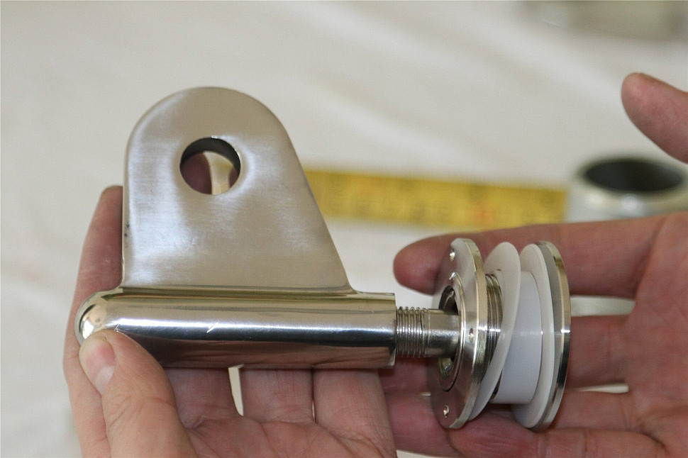 Рутель шарнирный (стеклодержатель) используется при спайдерном остеклении, остеклении фасадов, остеклении вертикальных фасадов, остеклении вентилируемых фасадов, монтаже входных козырьков из стекла, монтаже входных козырьков из поликарбоната. Отверстие в стекле под рутель нужно делать 40 мм. Предназначен для стекла или поликарбоната от 10 до 26 мм. Шаг резьбы рутеля 1,5 мм. При желании можно монтировать более тонкое стекло с применением прокладочных элементов.