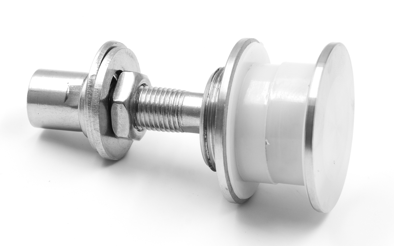 Рутель для вантового крепления козырьков, регулируемый, разборный, под стекло от 10 до 26 мм, полированный, диаметр внешнего кольца 50, шпилька М14 (aisi 304)