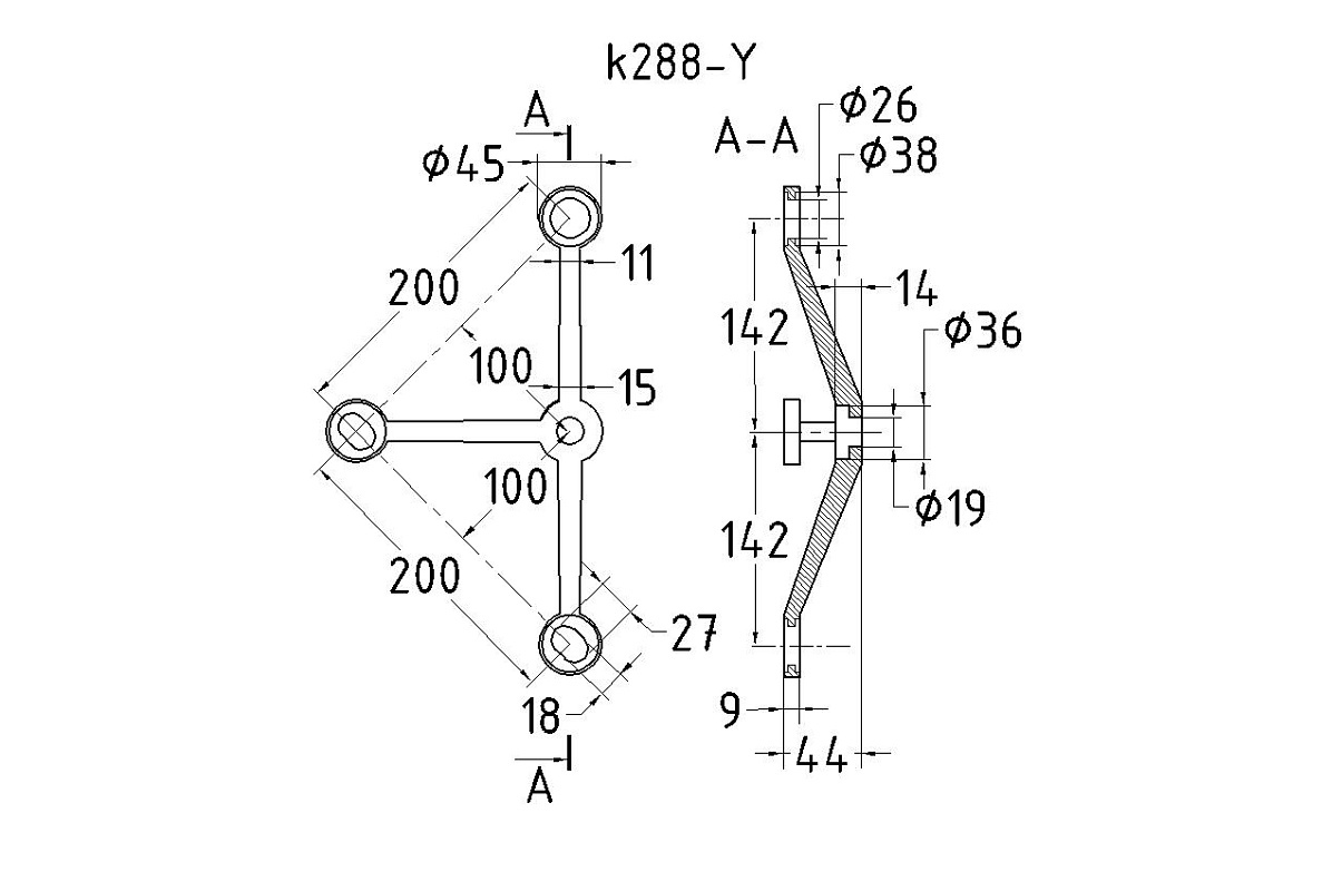 Спайдер-200мм Y-образный 3х26х38, 1х18х36/40мм, нагрузки: 1кН, 2кН (AISI 304) k288-Y
