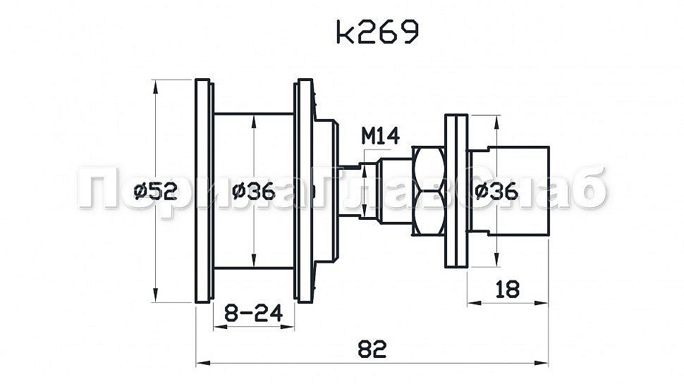 шаг резьбы шпильки М14 рутеля - 1,5ммпод стекло от 16 до 20 мм (отверстие 40 мм)