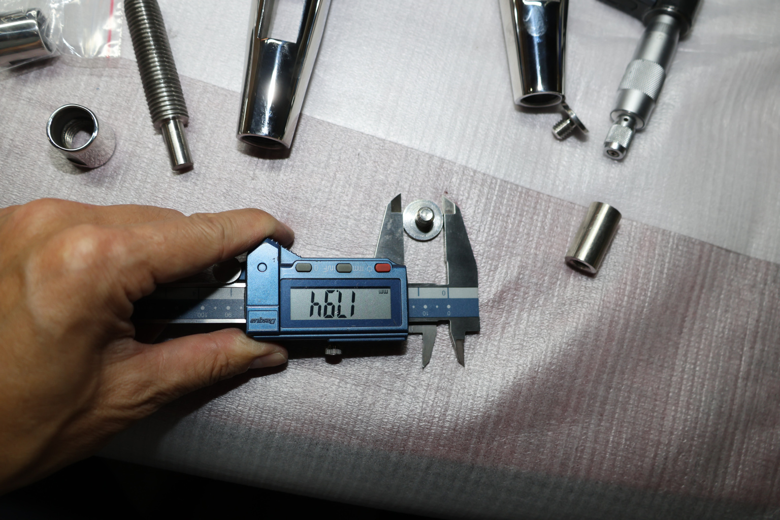 Наконечник состоит из тела с технологическим отверстием М16 и фиксатора