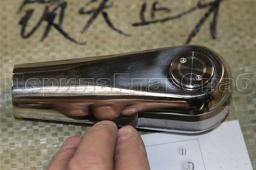 Наконечник монтируется на тягу, затем концом с пазом крепится на серьге либо на крепление со стеной.