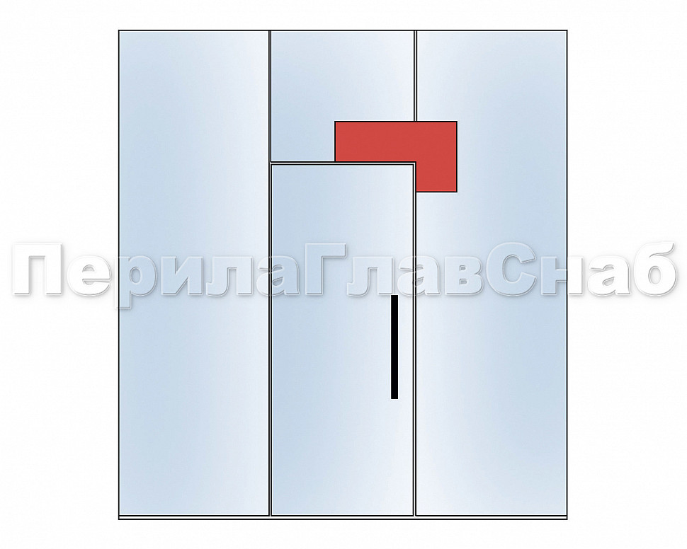 для соединения стационарной панели стеклянной перегородки с верхней фрамугой. Стопор ограничивает открывание двери в любую из сторон по выбору.