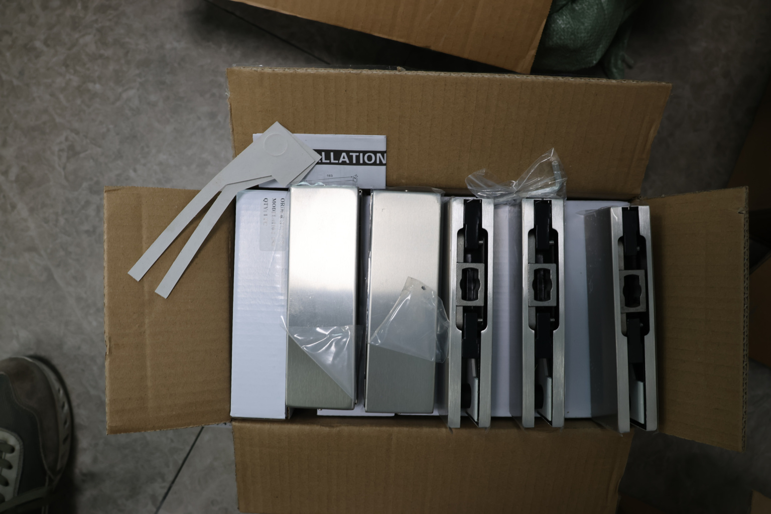 Замок для стеклянной двери угловой с круглым ригелем комплект, шлифованный t150 SSS