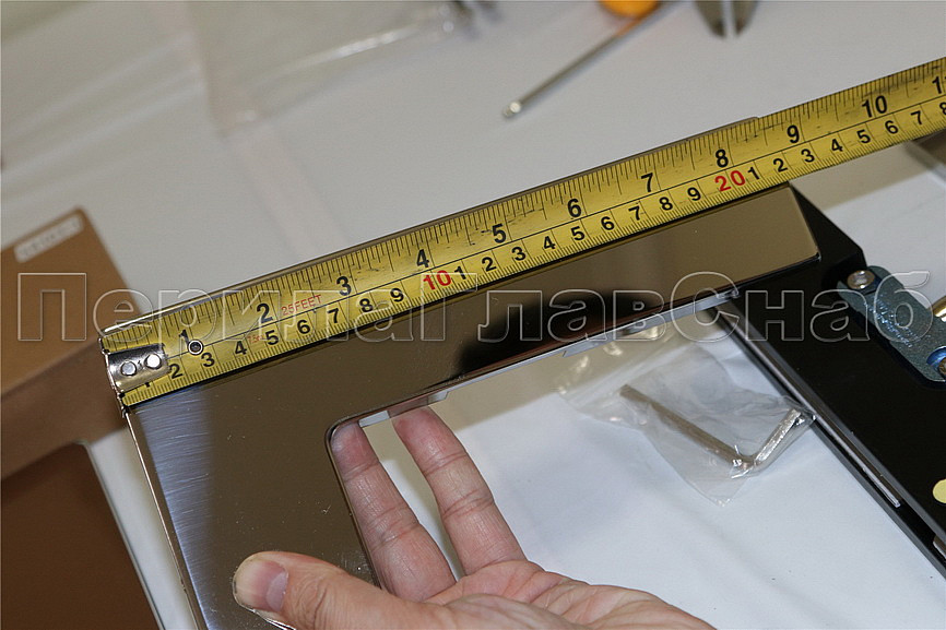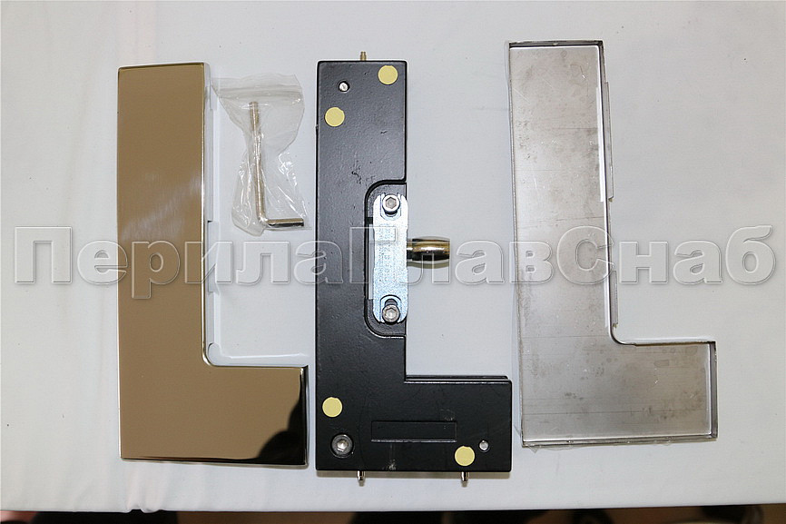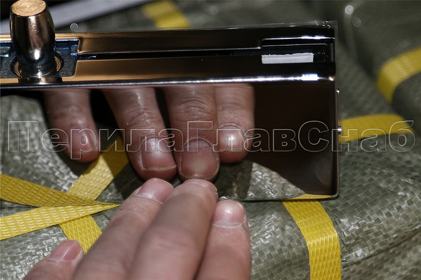 сбоку нажимаем на крепления крышек и снимаем. Отвинчиваем винты, и фиксируем фитинг в подготовленный вырез в стекле. Далее закручиваем и фиксируем обратно крышки.