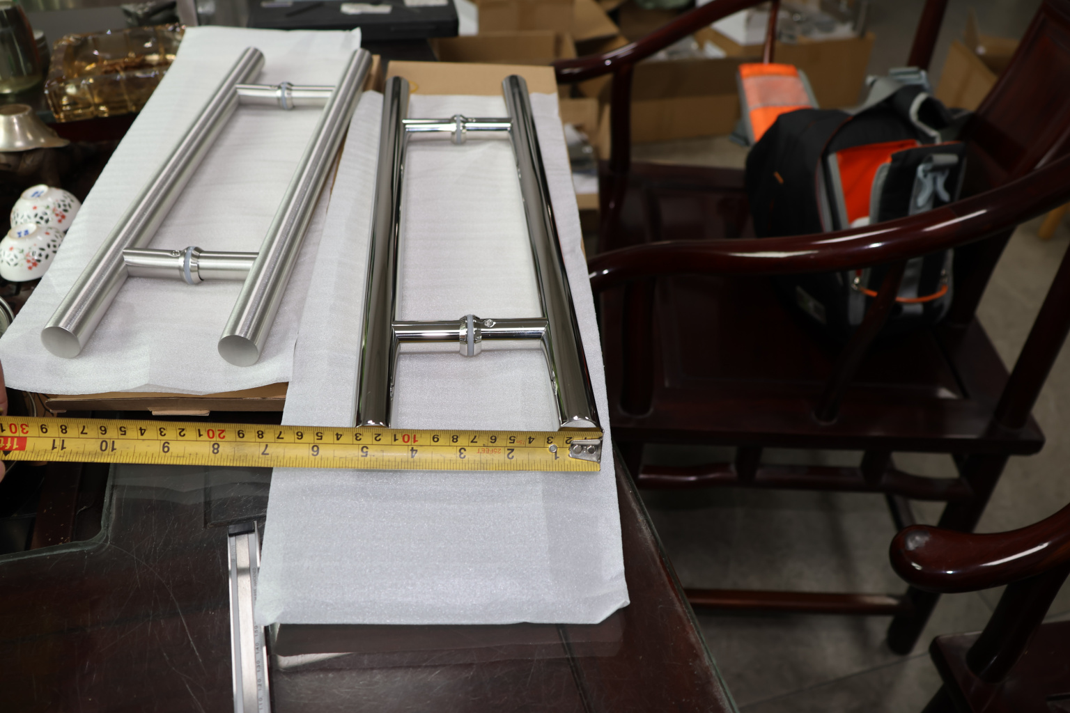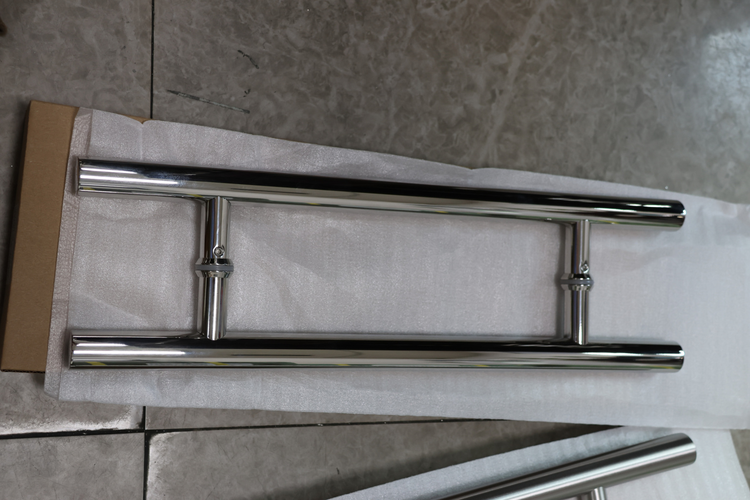Ручка для стеклянной двери рейлинг двухсторонняя для стекла 8-12 мм, 25x275x450 мм, полированная, марка стали- AISI 304