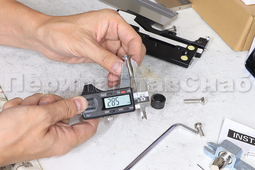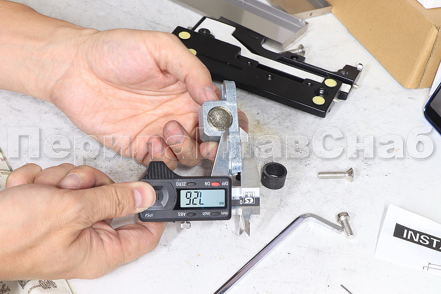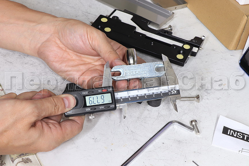 фитинг с помощью анкера, который идёт в комплекте фиксируем в стене. Сбоку нажимаем на крепления крышек и снимаем. Отвинчиваем винты, и фиксируем фитинг в подготовленный вырез в стекле. Далее закручиваем и фиксируем обратно крышки.