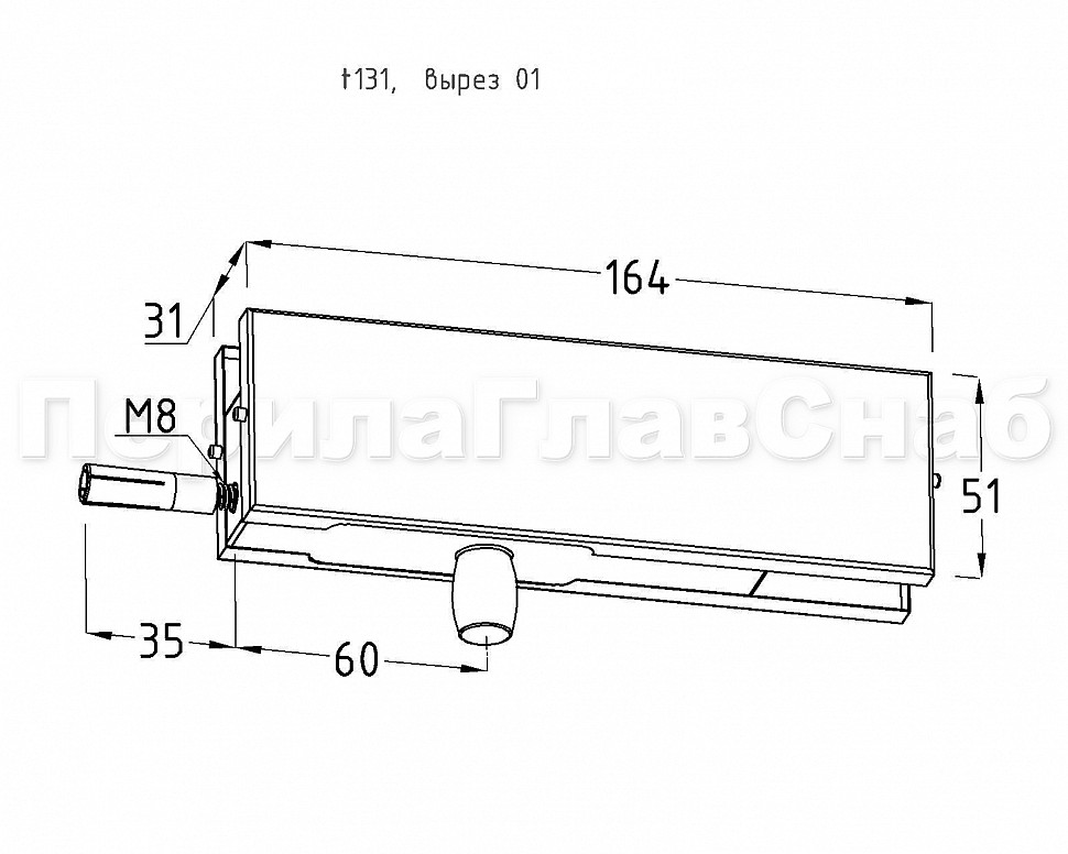 Фитинг на фрамугу с осью и анкером, шлифованный, вырез 01 t131 SSS