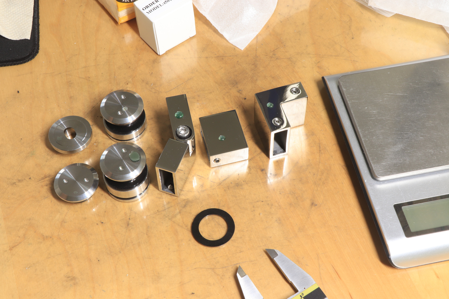 Стеклодержатель Ø50х10х18, шпилька М16х205 мм, для стекла 8-40 мм, AISI (201), с возможностью регулировки выноса до 65 мм, для торцевого крепления стекла, полированный, литой k277-3 купить в Самаре
