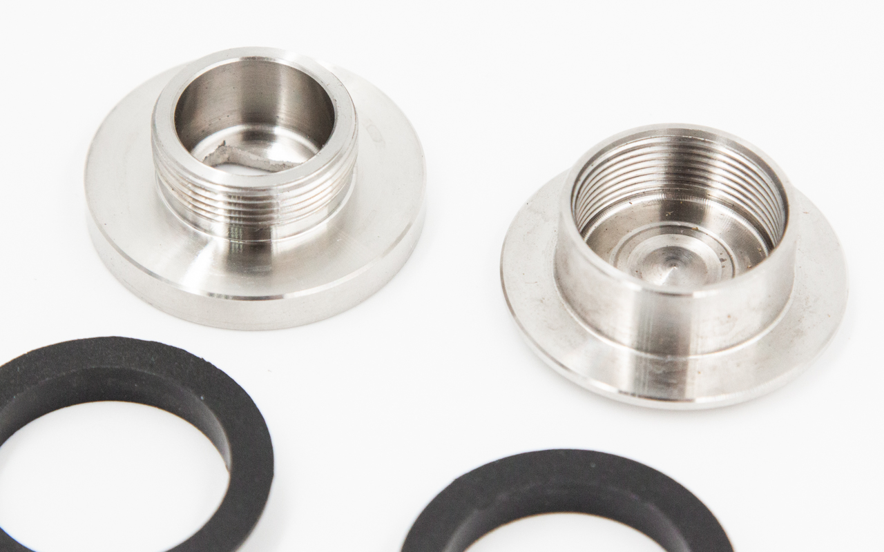 Комплект торцевого крепления несущего стекла, гайка-шайба Ø50х10х18 мм с внутренней резьбой М16, порошковая покраска RAL 9005 мат, AISI 304 Фk277-6-П