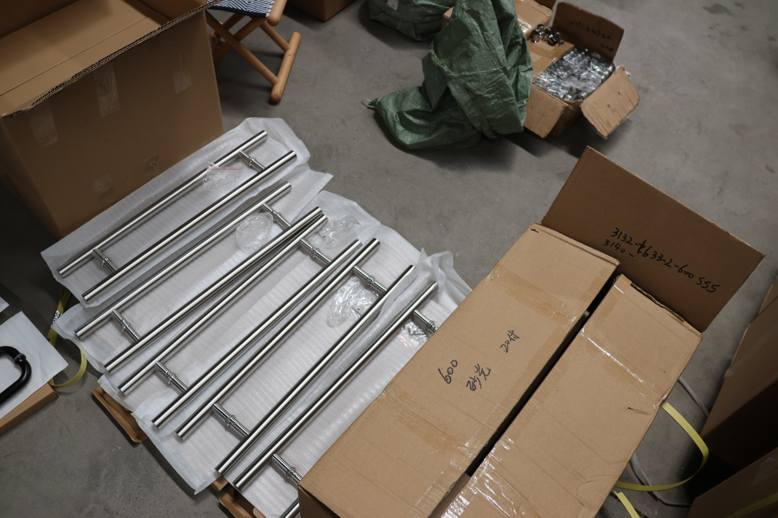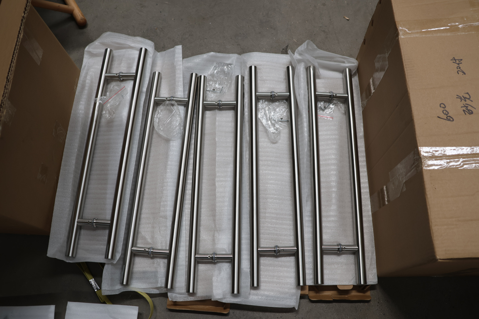 Ручка для стеклянной двери рейлинг двухсторонняя для стекла 8-12 мм, 25х425х600 мм, шлифованная, марка стали- AISI 304
