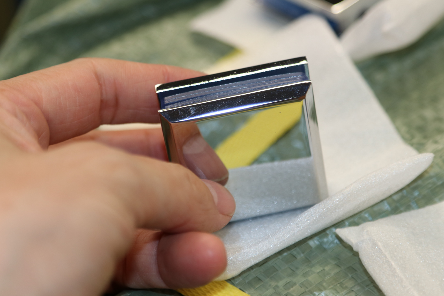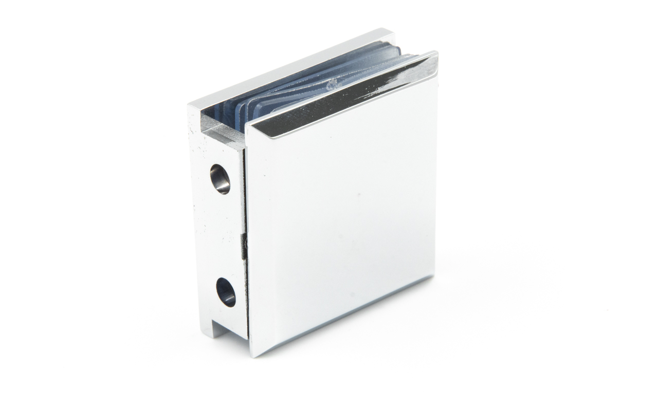 Коннектор для душевой кабины стена-стекло 90° с двумя отверстиями, 45*45, цинк, полированный, вырез 68