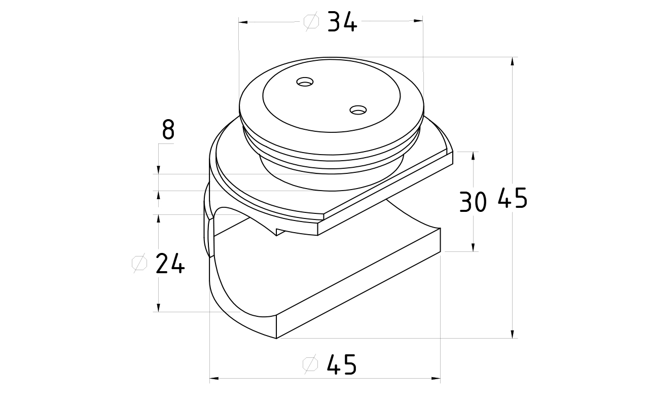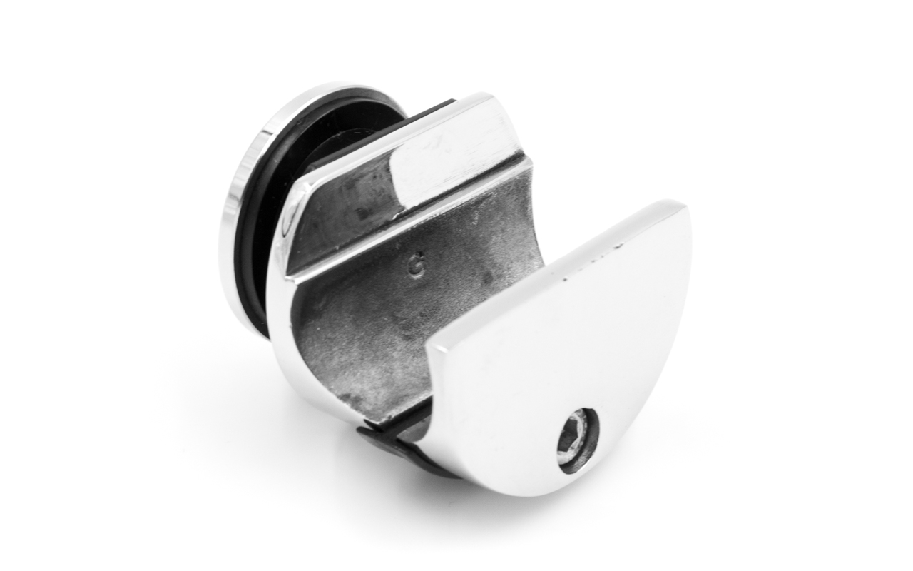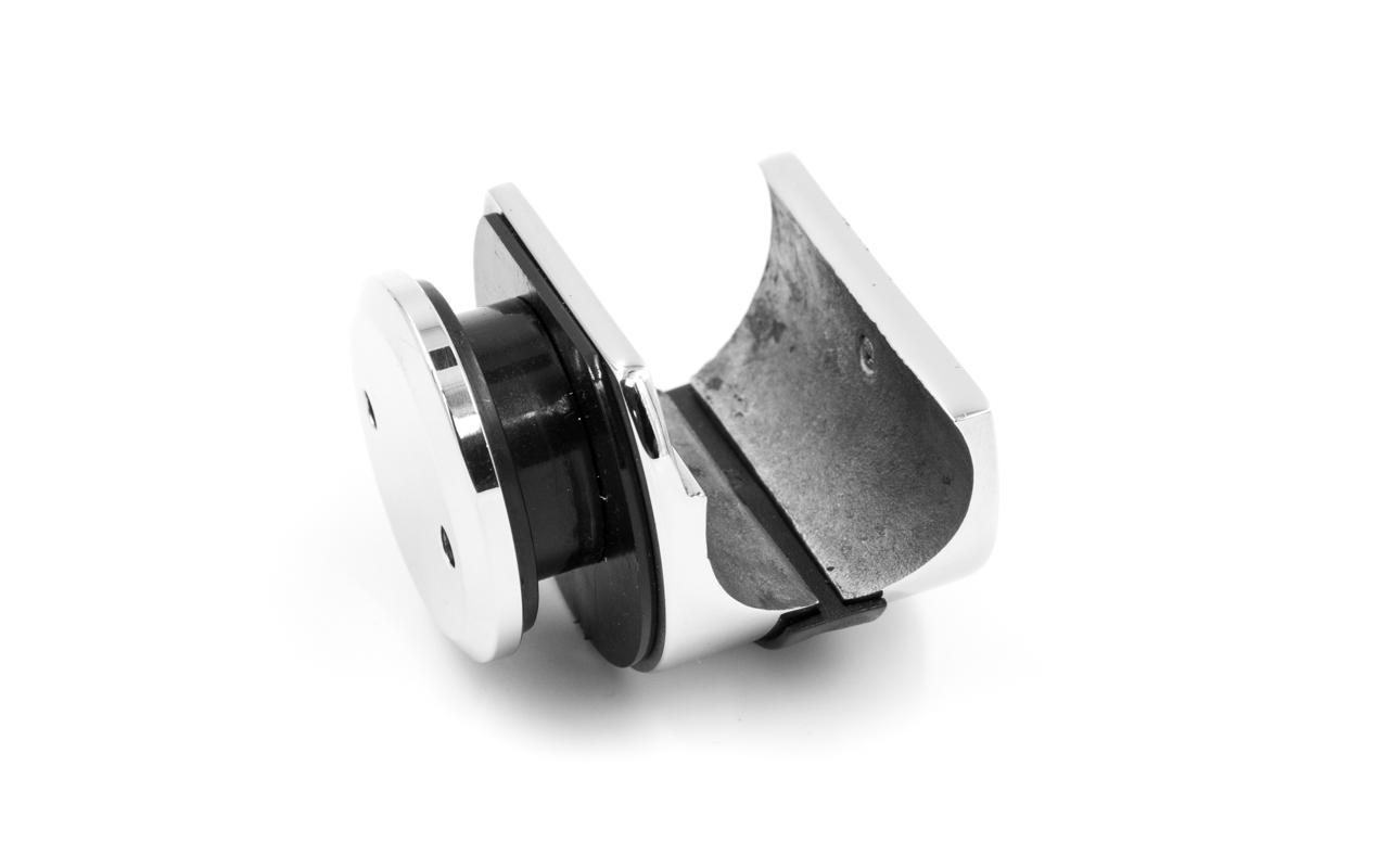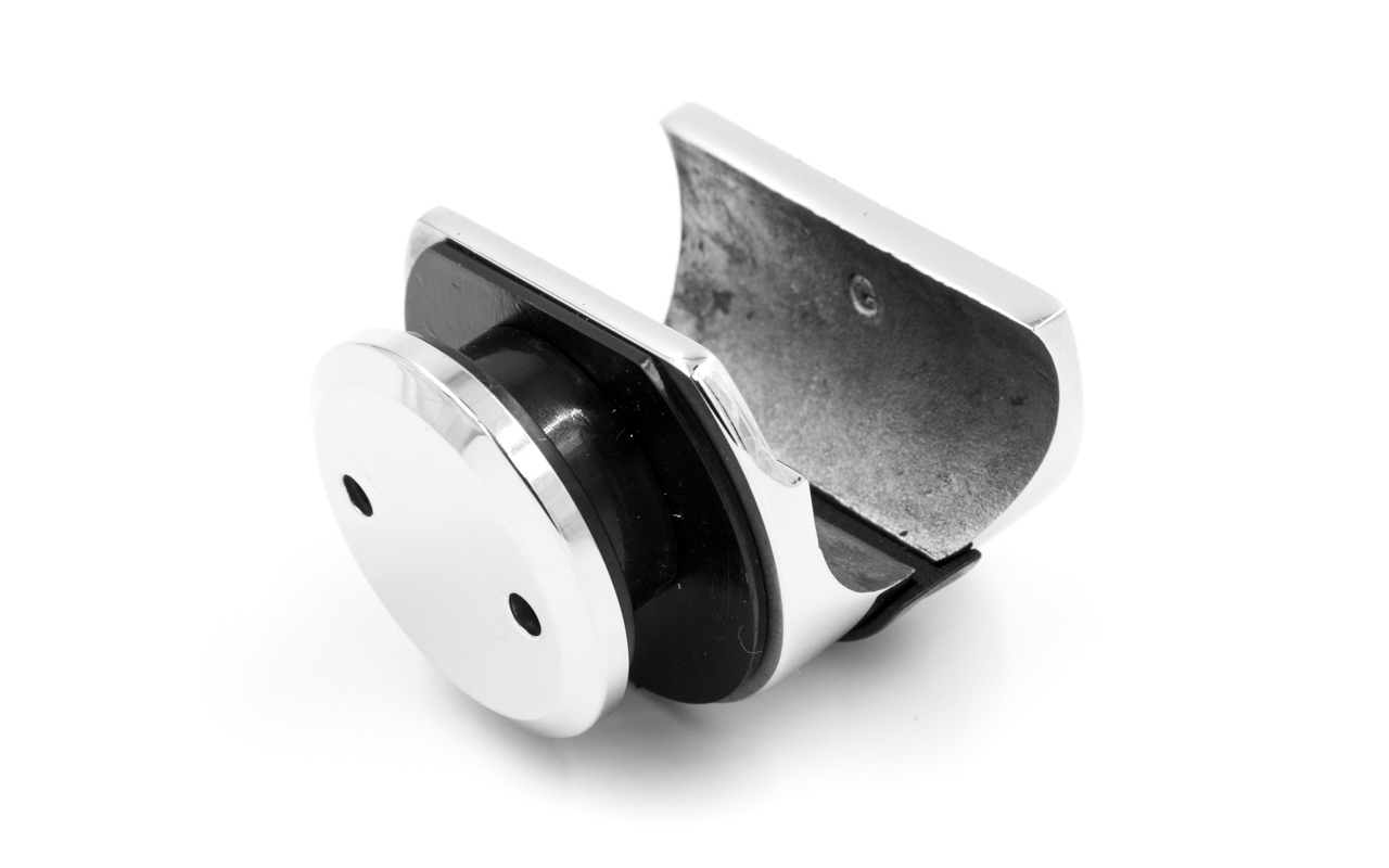 Крепление трека к стеклу, без зенковки, под 25 трубу. Марка стали- AISI 304.