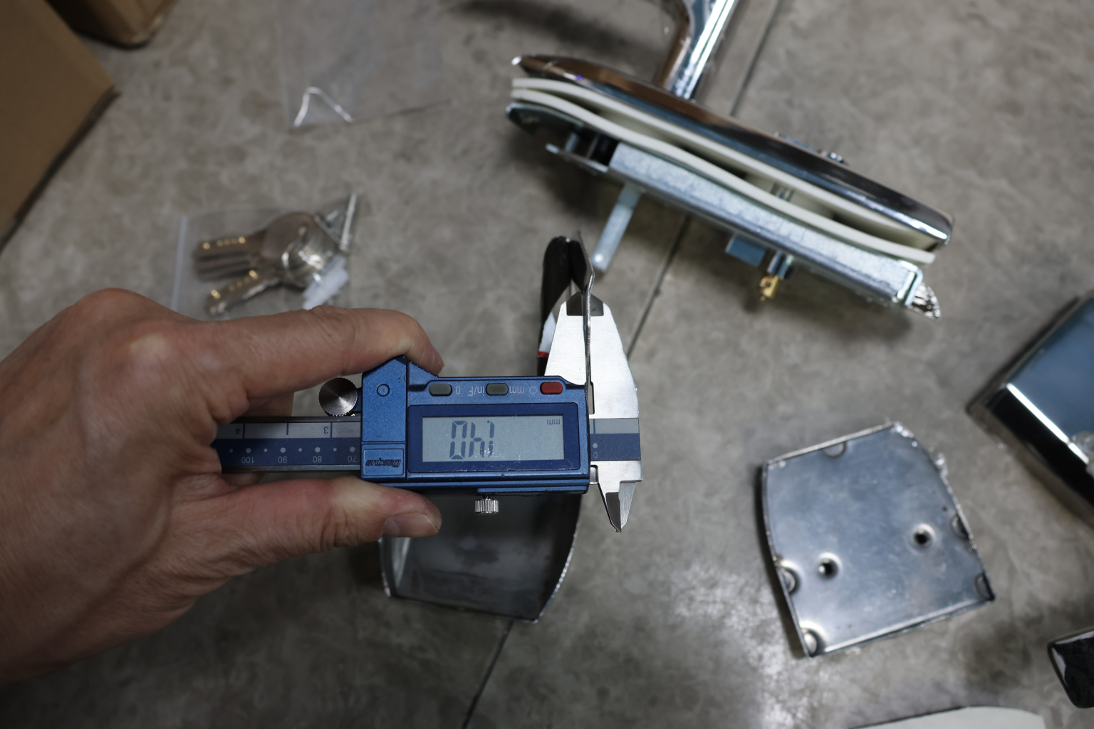 Замок с нажимной ручкой, евроцилиндр односторонний ключ/защелка, с ответной частью на стекло, полированный