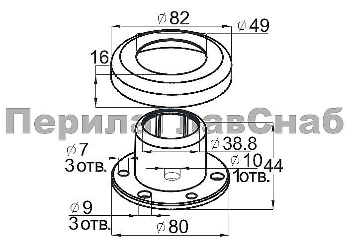 Фланец стойки 42.4/80 х 5 (4,3) х AISI 304 #200 3 отв х М10 х 20 k116-42-4 купить в Самаре