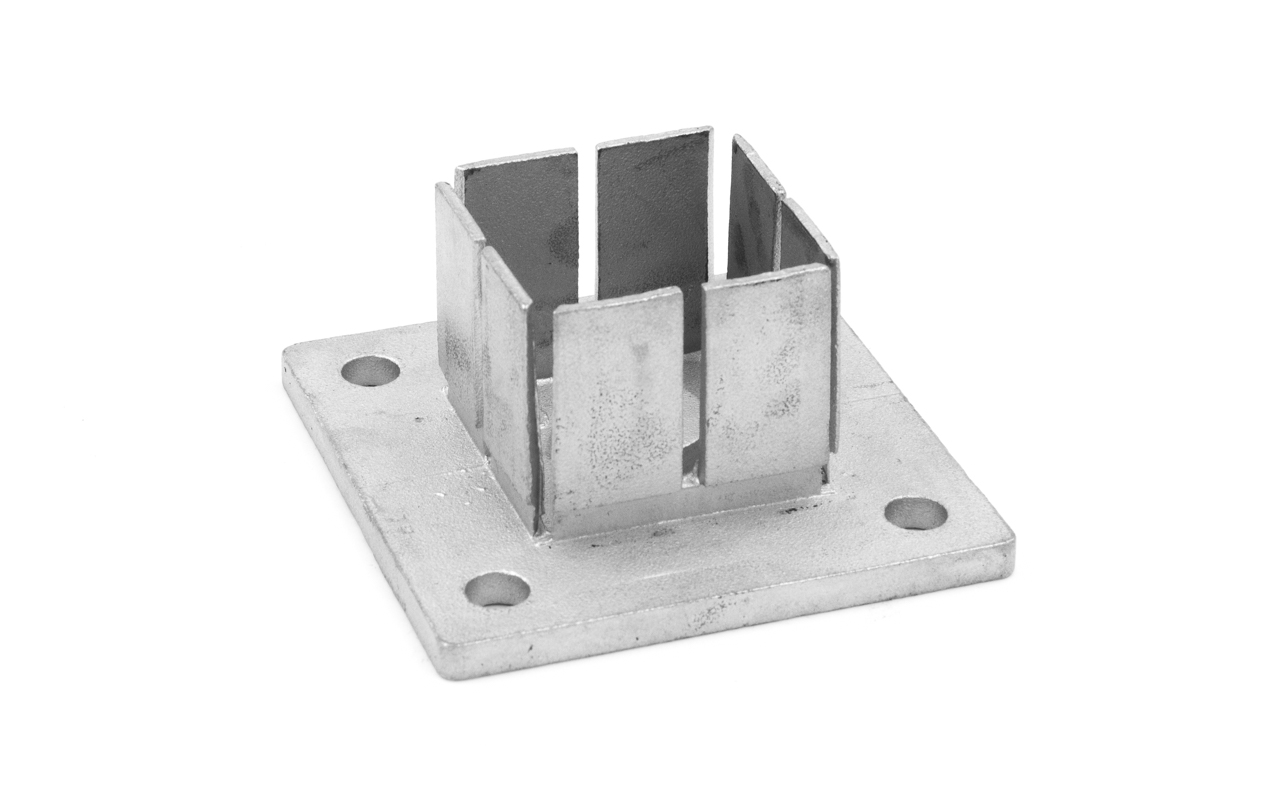 Цанга для стойки 40х40мм, под анкер 8 мм или на 4 анкера М8. Для надежной установки на деревянную ступень, плитку, бетон