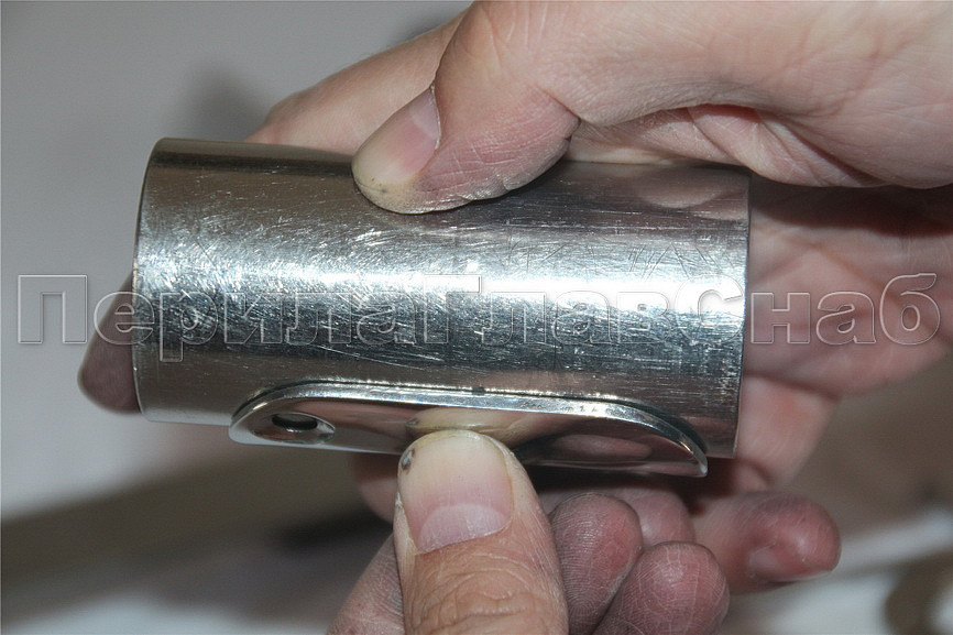 Держатель поручня выносной на стойку, с регулируемым ложементом под трубу Ø38.1 мм, резьба внутренняя М8, полированный, (AISI 304) k261