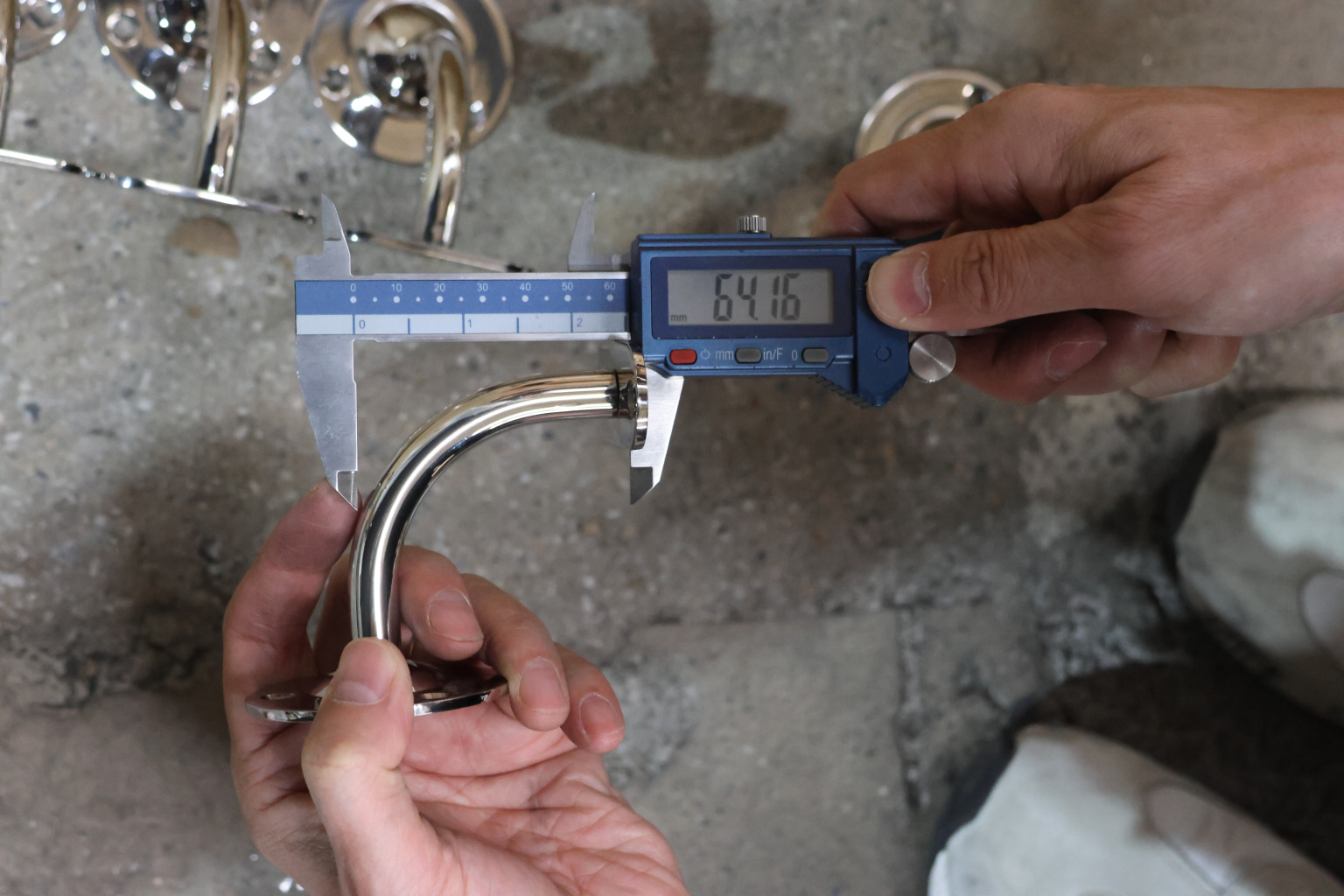 Пристенок с ложементом на плоскость, сварной, вынос 65х65, Ø60х3мм, 25х45х2мм, полированный, марка стали - AISI 304