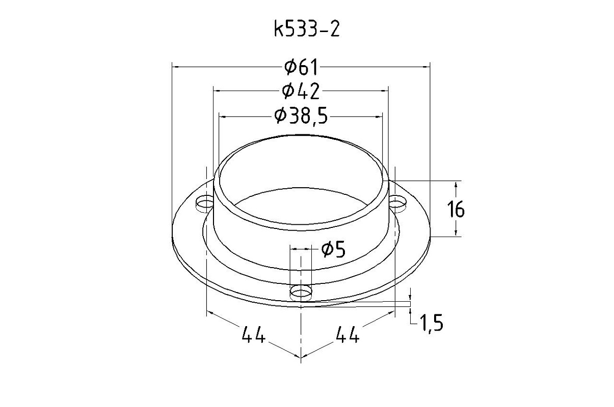 Фланец штампованный, для трубы Ø38.1 мм, полированный, внешний диаметр Ø68 мм, толщина 1.3 мм (AISI 304) k533-2