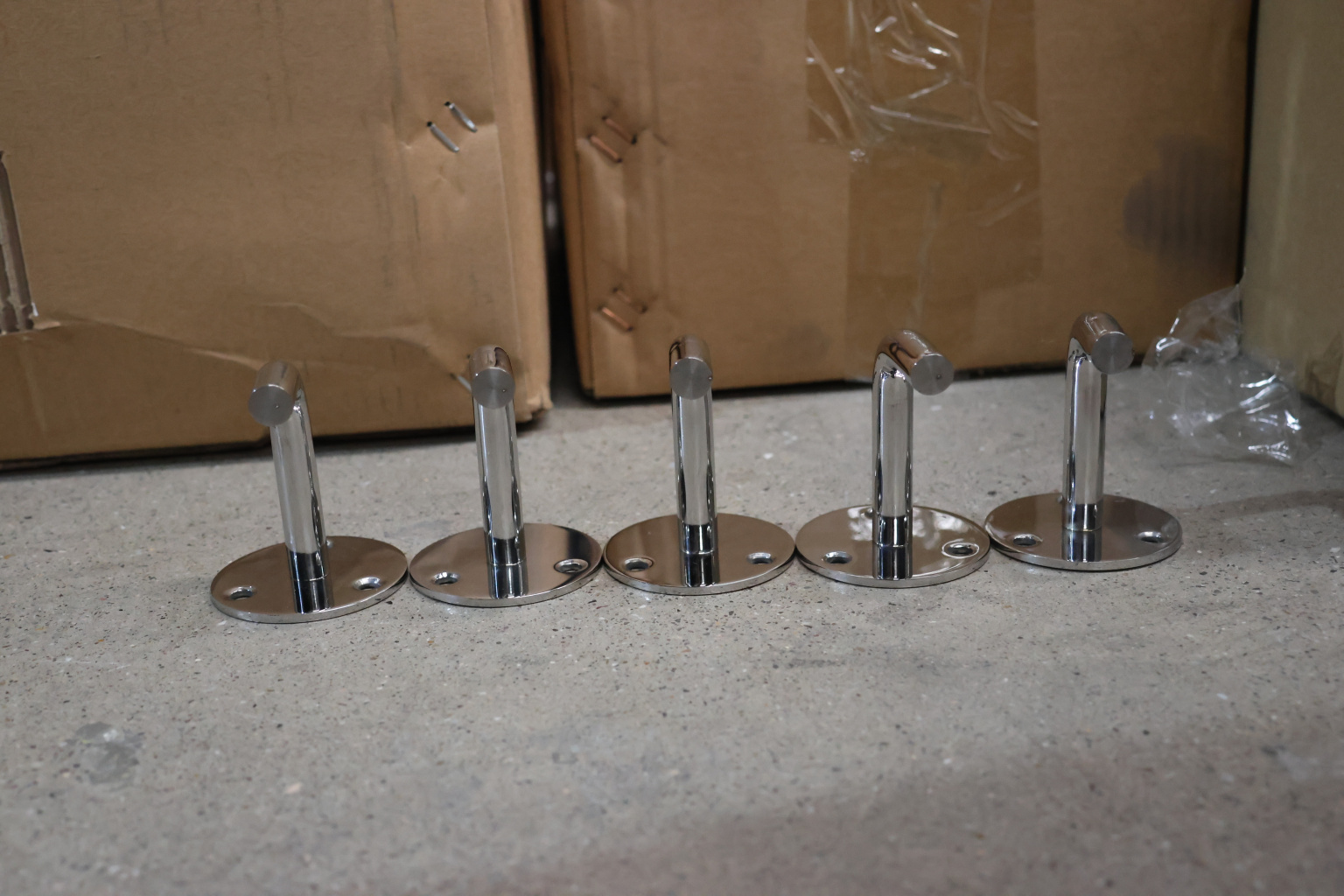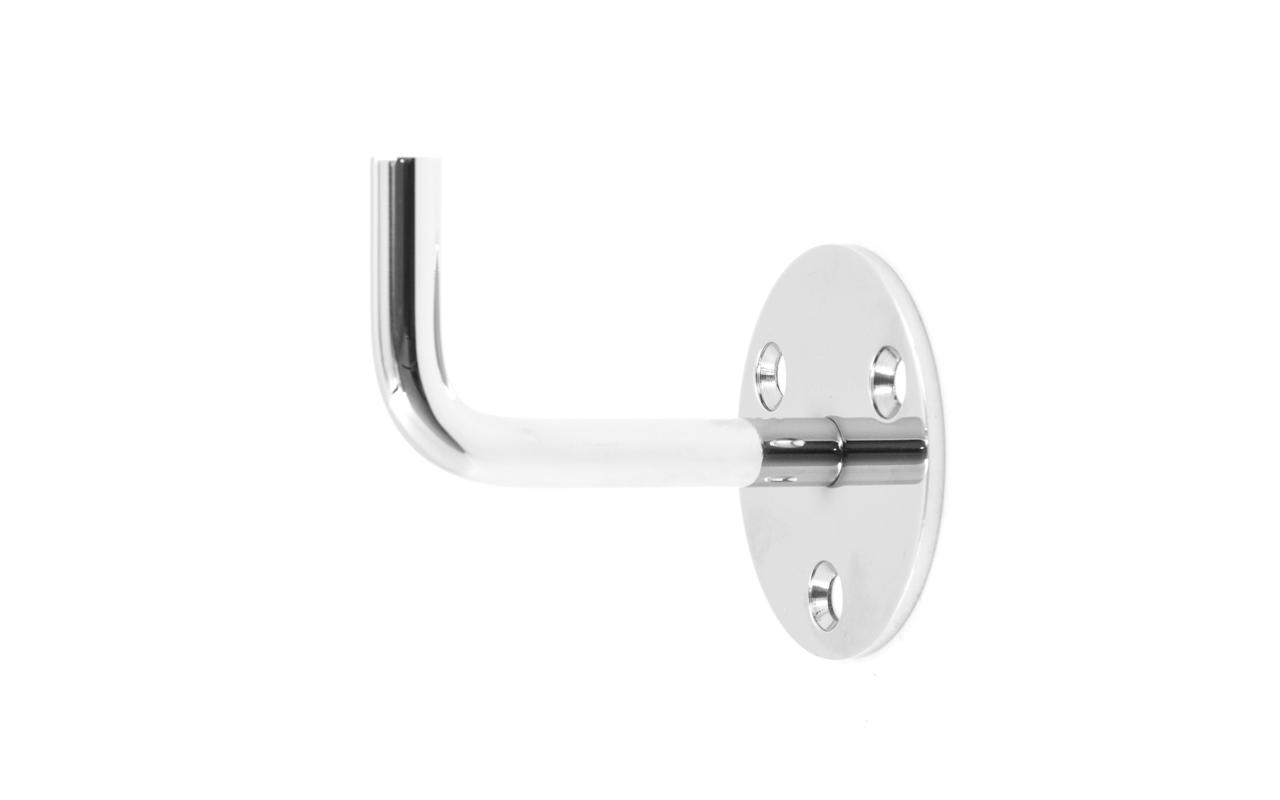Отличный пристенный держатель эконом класса. Установка данной модели возможна только внутри помещения, так как она сделана из 201 марки стали. Вынос от стены составляет 60 мм. Это оптимальный размер, чтобы не задевать стену, скользящей рукой вдоль поручня. При этом поручень располагается близко к стене, дабы не сужать свободное пространство полезной ширины лестничного марша.