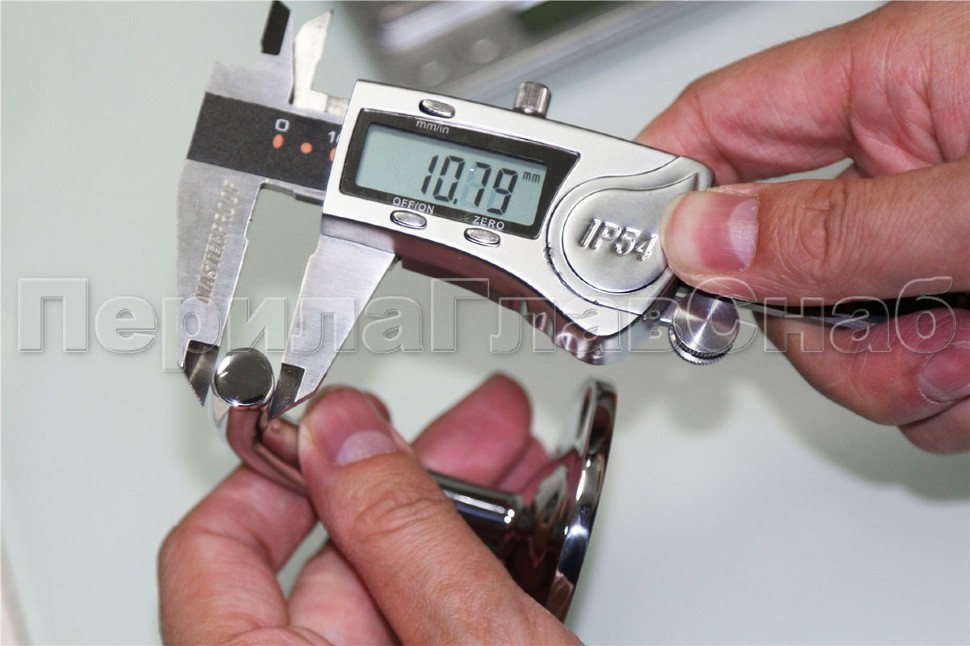 Фланец наружный по отношению к трубе поручня. Перила заправляются внутрь стального фланца, установленного на 4 самореза в стену.