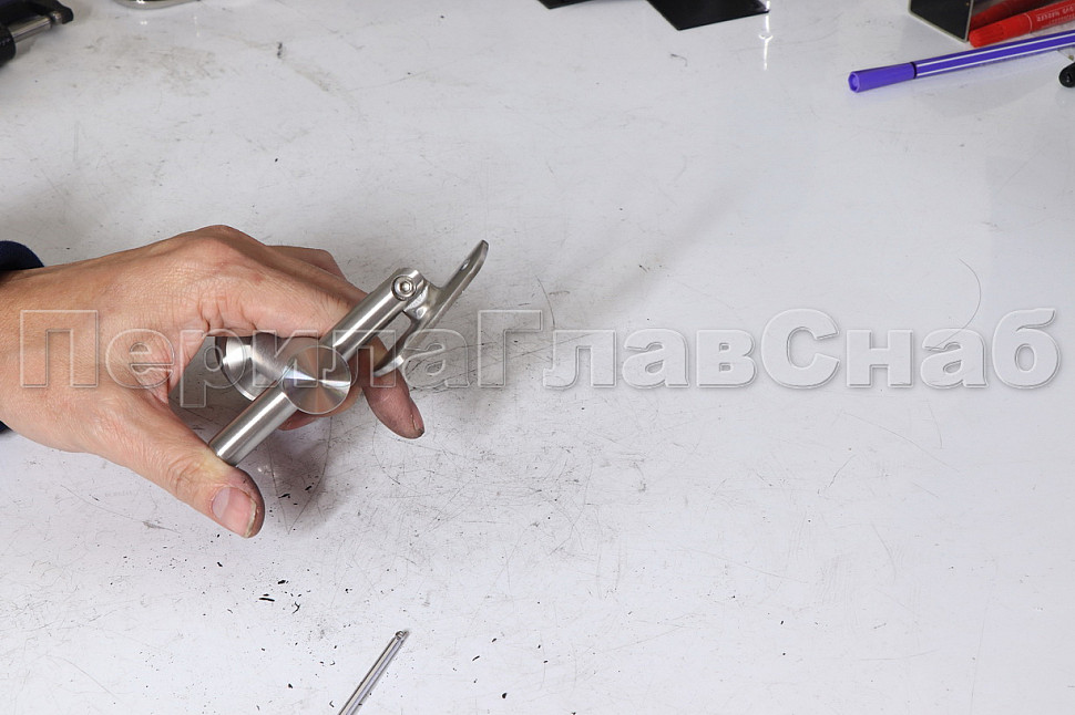 Деталь удобная в работе, не требует никаких специальных навыков, легко монтируется на ограждении для создания эффекта выносного поручня на несущем стекле.
