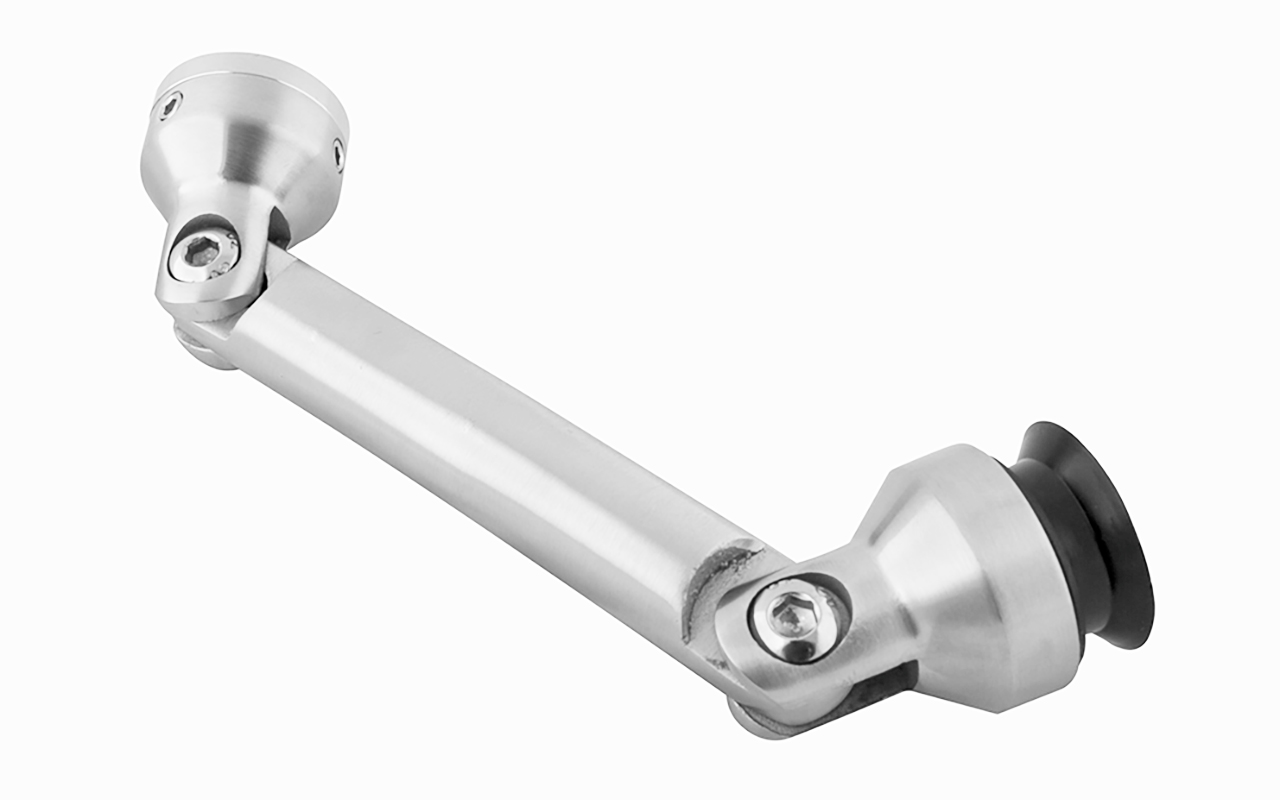 1. t005 Стеклодержатель с зенковкой, шарнирный, для стекла 10-12 мм, AISI 304 шлифованный
