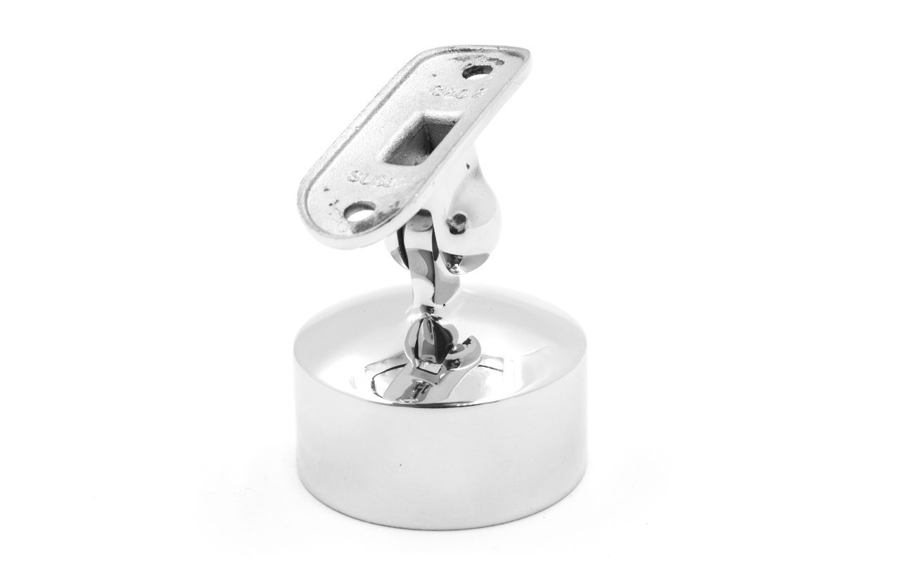 Предназначен для соединения поручня Ø50.8 мм со стойкой Ø50.8 мм. Деталь с регулируемым ложементом, что позволяет монтировать её как и на горизонтальных площадках, так на лестничных маршах.