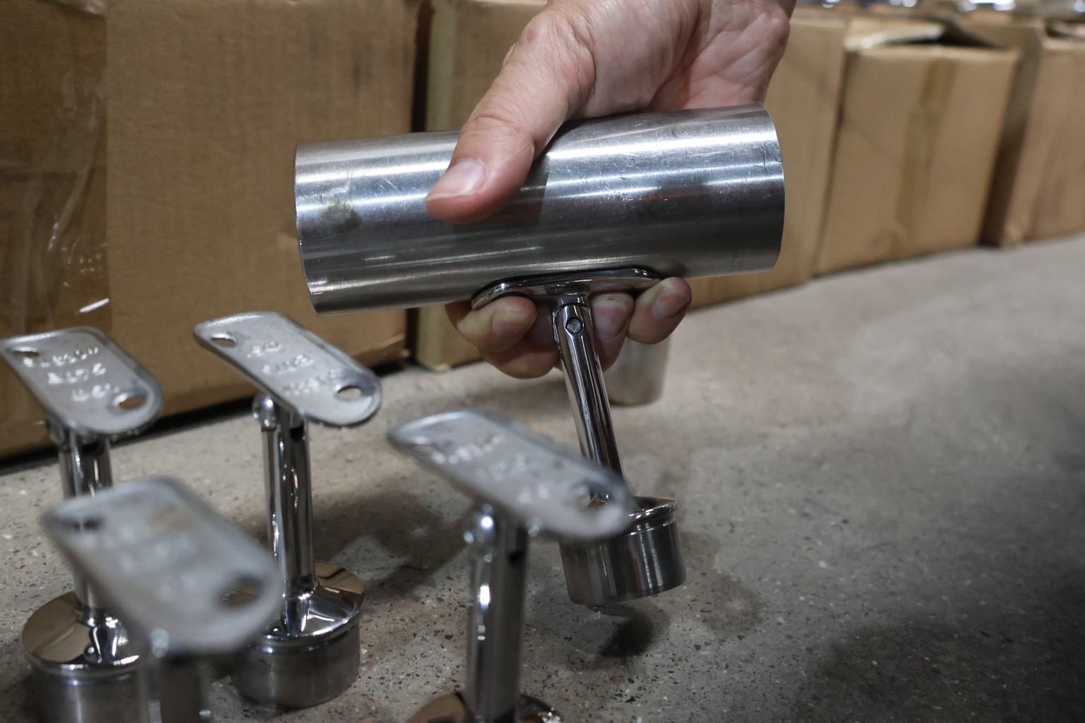Наконечник палец с регулируемым ложементом под поручень Ø38.1-42.4 мм, на стойку Ø38.1х1.5 мм, литой, полированный, нержавеющий (AISI 304) k006-7