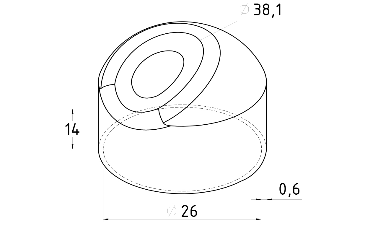 Наконечник стойки штамп, под 30°, Ø25/38 х 0,6 марка стали- AISI 201