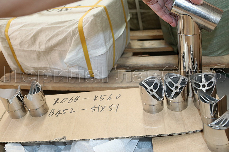 Наконечник седловина косая 30° на стойку диаметр 50.8 мм, под поручень диаметром 50.8 мм. Деталь литая, полированная. Марка стали - AISI 304
